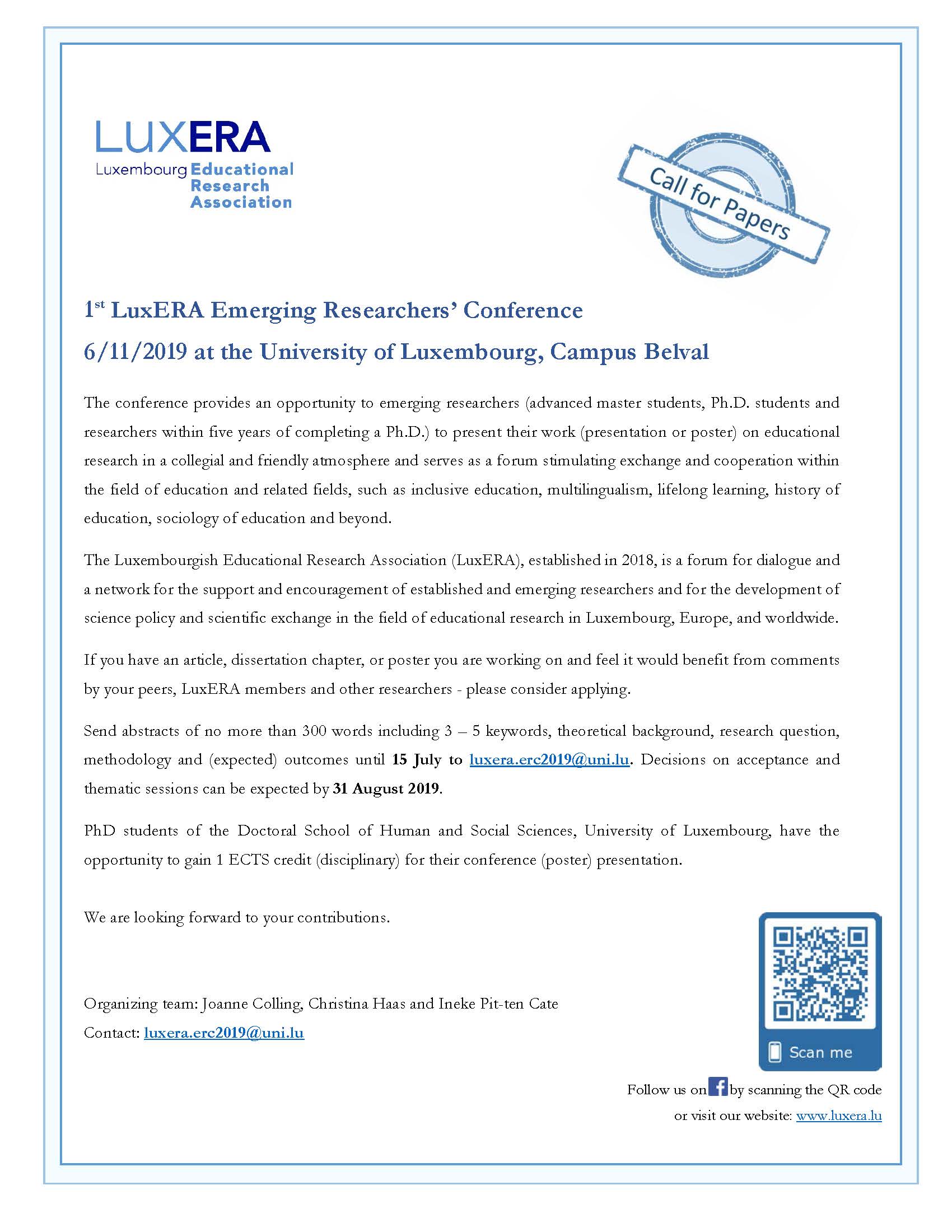 | LuxERA Emerging Researchers Conference, 6th November 2019 Call for Papers | Keynote | Program | Abstract Book | Photos |